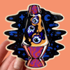 Approx 3.4" x 3.5" vinyl die-cut sticker.